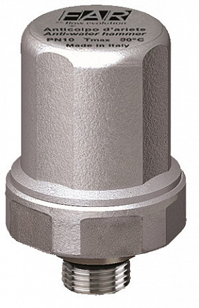 Гидравлический удар — опасное явление, способное полностью вывести из строя участок трубопровода. Для того чтобы защитить трубы, арматуру и другое оборудование, рекомендуем использовать компенсаторы гидроудара производства FAR. Устройства эффективно сглаживают всплески давления в системе, сохраняя параметры работы системы в пределах нормы. Конструкция компенсатора гидроудара серии FA 2895 12: