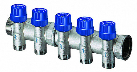 Коллектор с терморегулирующими клапанами. Устанавливается на обратную магистраль системы отопления.