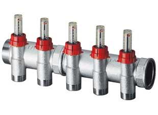 Сборный хромированный подающий коллектор с расходомерами и вентилями для балансировки системы.