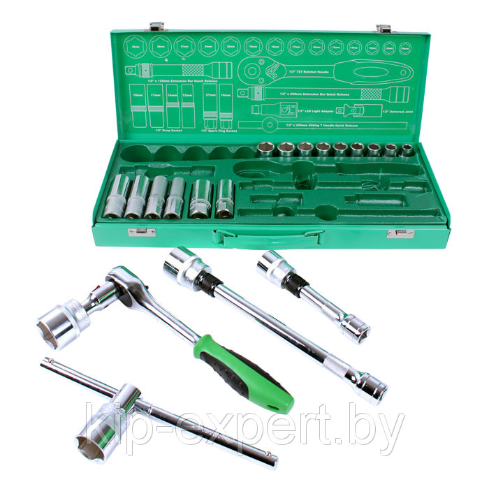 - набор содержит трещеточный реверсивный ключ и универсальный шарнир;