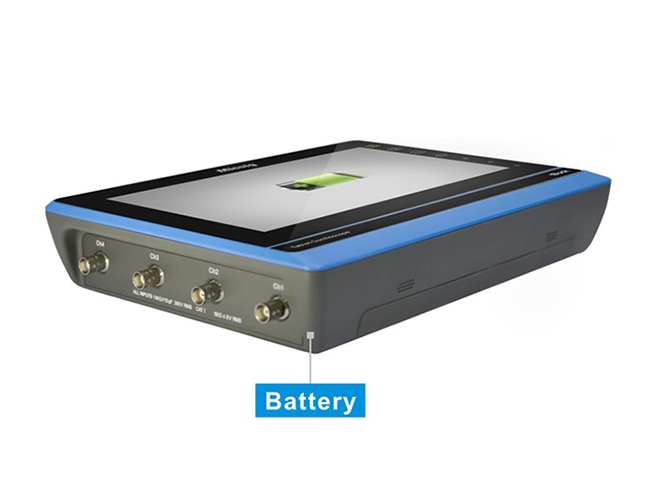 Литий-ионная аккумуляторная батарея большой емкости (7500 мА-ч), легкосъемная, обеспечивает время работы осциллографов Micsig до 5 часов.