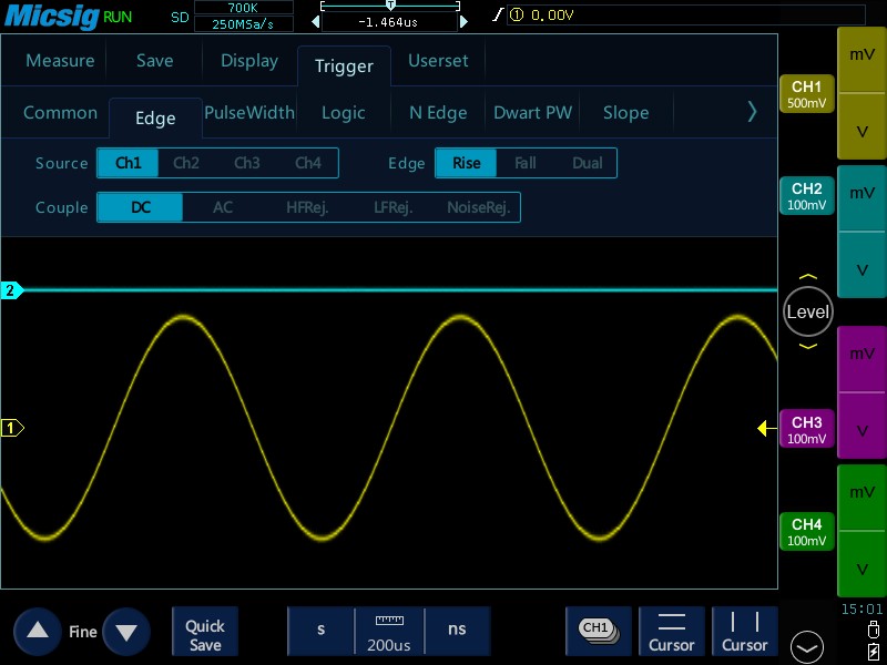 Щелкните пальцем по пиктограмме Quick Save для сохранения осциллограммы в памяти.